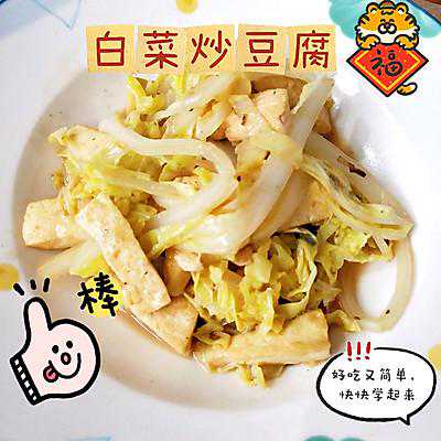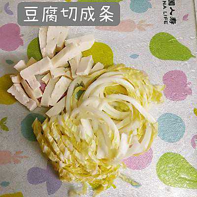 晚上吃了火锅,留下好多菜,第二天早上需要自己做早饭,就做了一道白菜炒豆腐。只用了五六分钟吧,但是超好吃诶,分享给大家。注:以下菜谱为一人食的量
