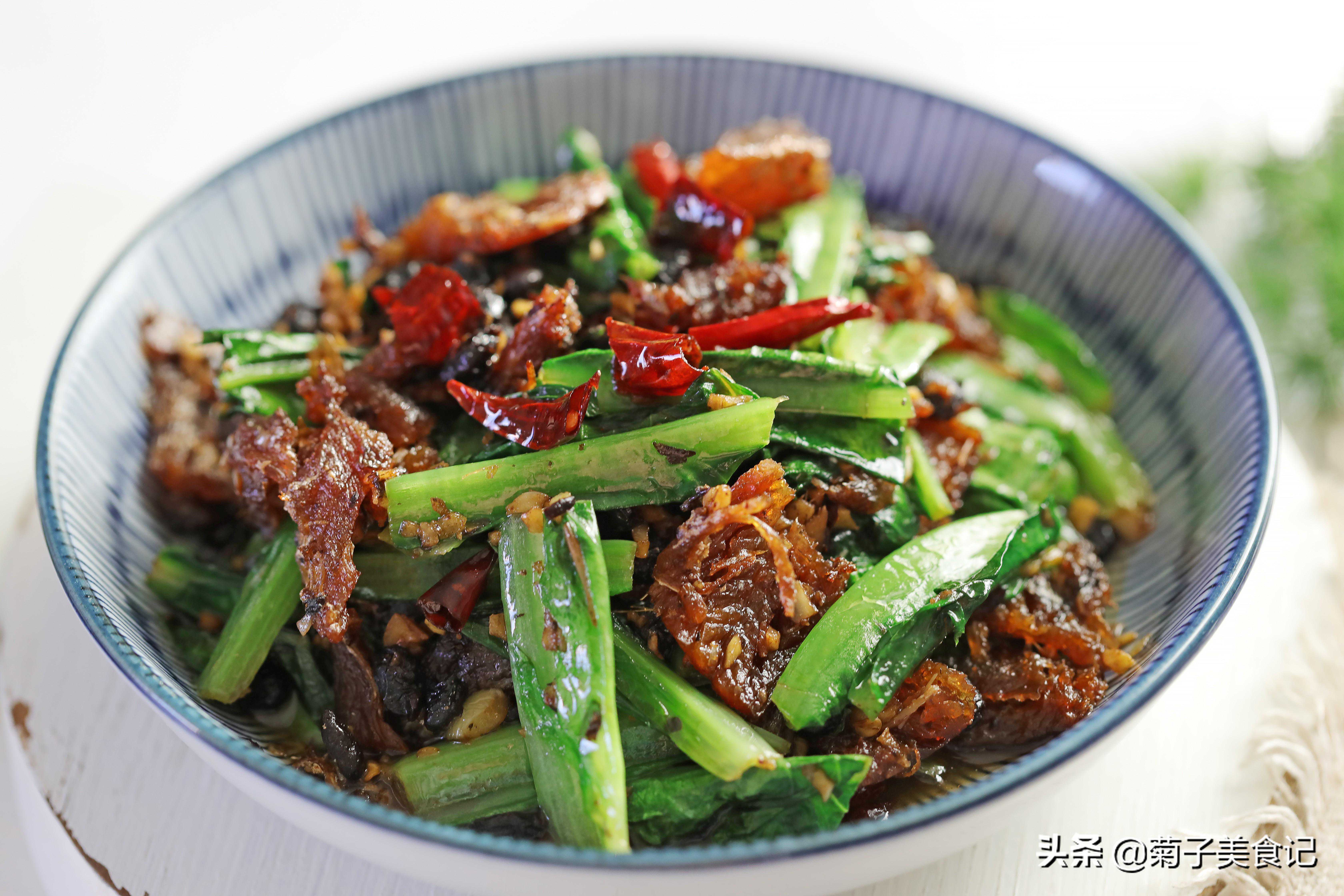 粤菜里有一道传统美食,叫豆豉鲮鱼油麦菜。