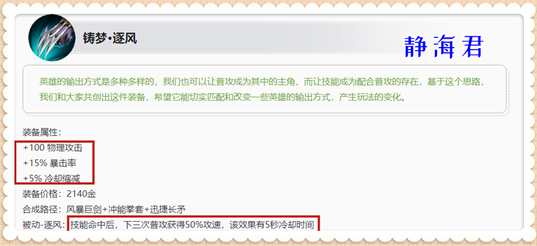 逐风被动:技能命中后可以为下三次普攻增加50%攻速。