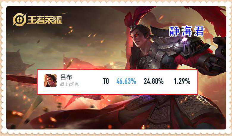 吕布目前的胜率和出场率都和马可波罗差不多,都是高出场率、低胜率的代表。