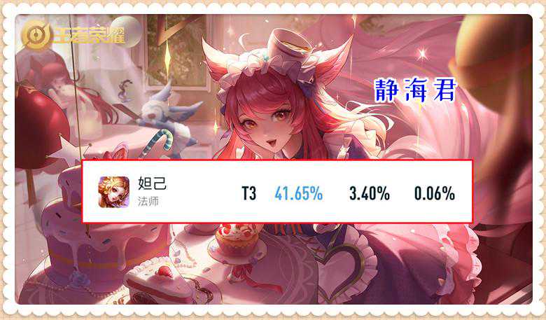我觉着妲己在新赛季应该可以成为一匹黑马,凭借着她操作简单的优势,吃到装备福利的优势,成功帮众多和我一样手残的小伙伴上分。