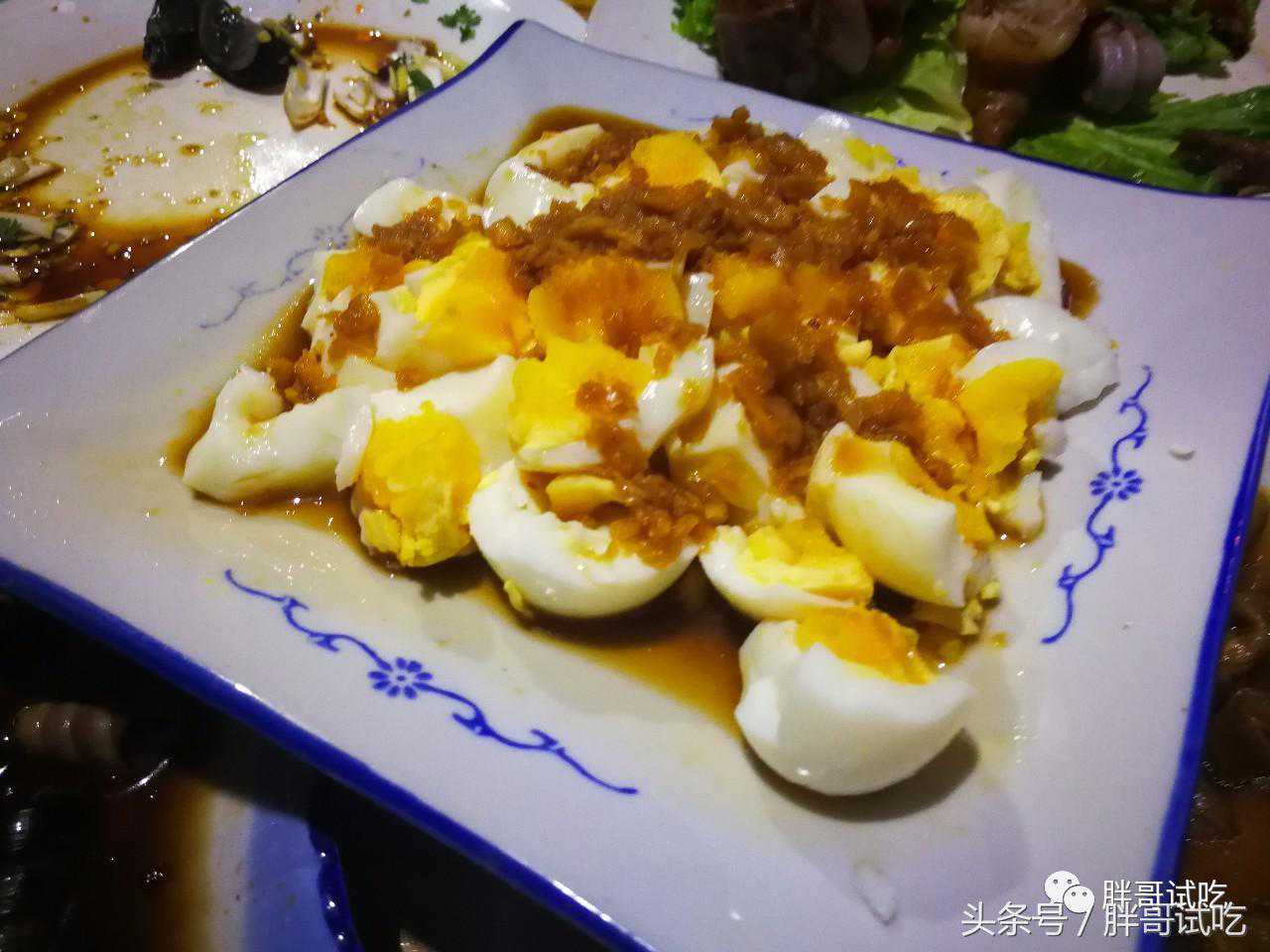 店内凉菜品种数量挺多,分别点了口水鸡、凉拌茄子、钉螺、猪蹄子、调豆腐丝、松花蛋,后又加了猪头肉和蒜泥鸡蛋,一共8个凉菜。