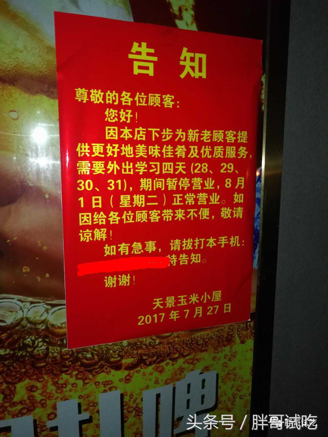 连续观察了几天,来此吃饭的不少都是中年男性,想必是此处小店也为其相邻小区的居民们提供了一个聚会喝啤酒的地方。看公告前几天老板曾外出学习,不知近日又有何更新的菜品。