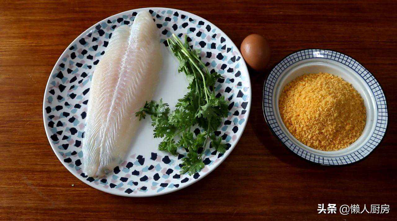 巴沙鱼柳,鸡蛋,香菜,面包糠,蒜香海盐,黑胡椒碎。