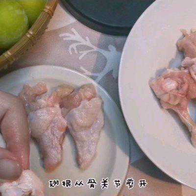 1、鸡翅根洗干净,用简单沿着根部剪一圈。