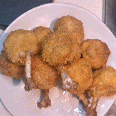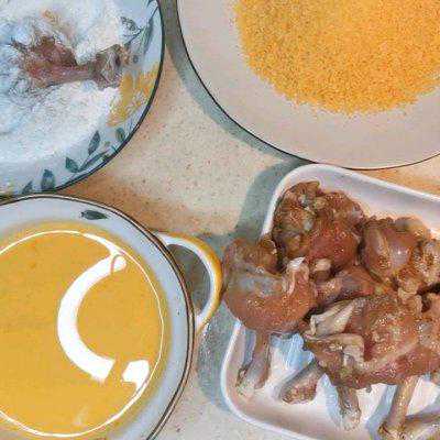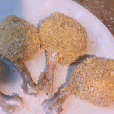6、腌好的小鸡腿,干粉,蛋液,面包糠