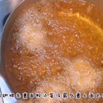7、先沾干粉,在泡蛋液,最后裹面包糠