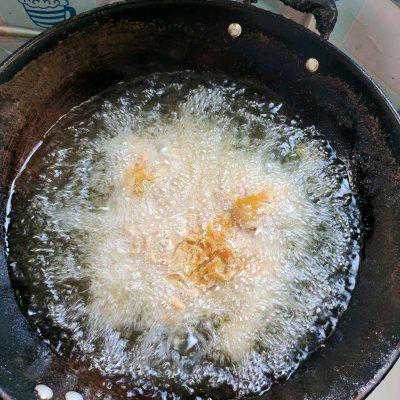 9、油温7层热,小鸡腿入锅,先不要翻动。