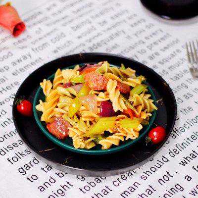 喜欢吃各种各样的面条,今天换了个口味,做了意面,加了罗勒和家里现成的时蔬材料,味道果然清新美味哟……
