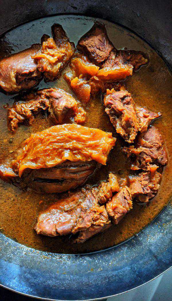 小贴士香料大家可以根据自己的口味适量增减。桂皮味道过重过厚,怕覆盖肉的自然香气,所以只放了一小块。老抽上色根据自己喜爱确定量的多少,或深或浅一点。炖肉快结束时可拿筷子戳一下,轻松到底说明肉烂了即可关火。过烂的话不易切成型。