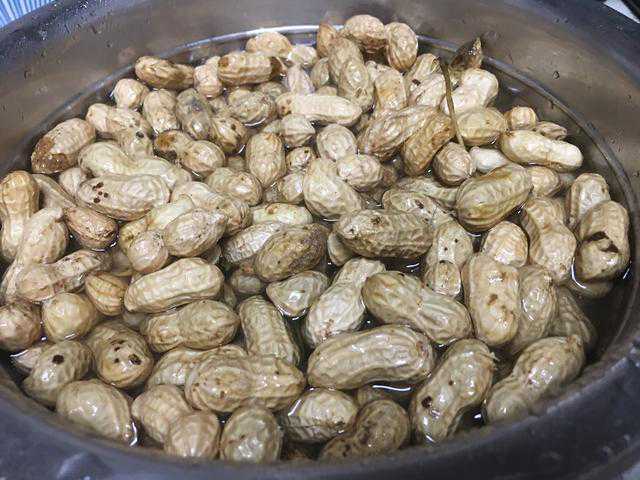 第一步,把摘回来的花生,放在大盆中,加入清水浸泡10分钟左右,然后用手摇晃花生,把花生壳上的泥沙都摇洗干净。这个动作要重复刷洗几遍,直到把花生壳上的花生洗干净为止。
