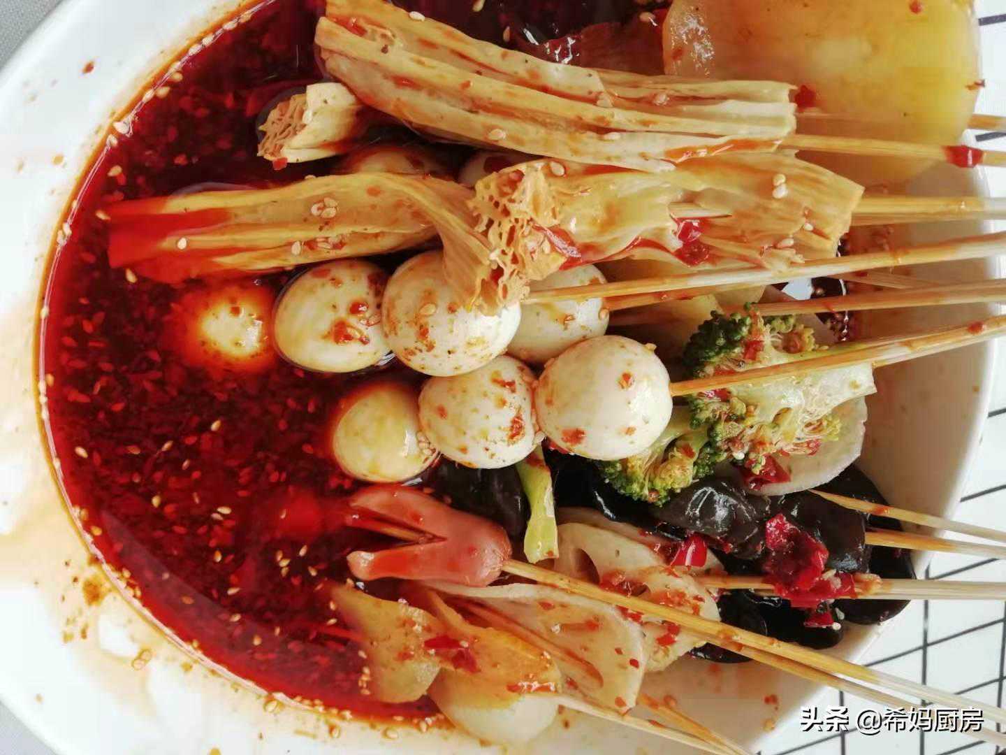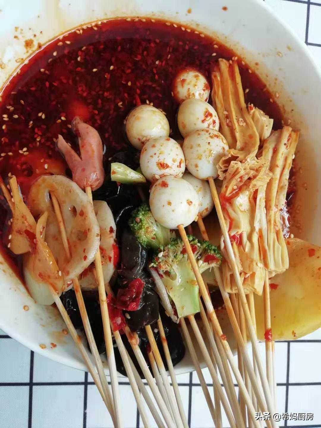 昨天,我在外面吃了一次冷锅串串,没吃过瘾,于是今天在家自己做了家庭快手版的冷锅串串,不是正宗的串串做法,但是胜在味道好。