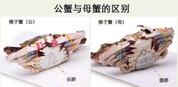 1看公母,公的腹部是三角形而母的是半圆形的,这是最简单的辨别方法。喜欢吃膏就选母的,喜欢鲜甜蟹肉的就选公的;
