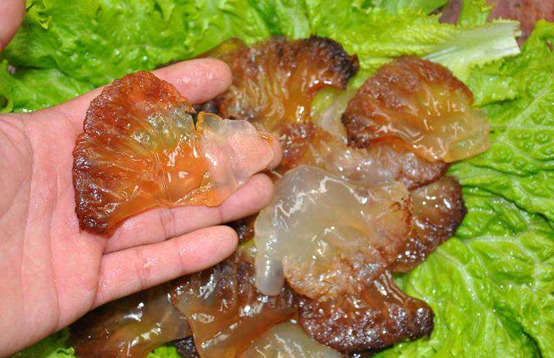 2观肉质。质量好的海蜇,皮薄、张大、色白而且质坚韧不脆裂。