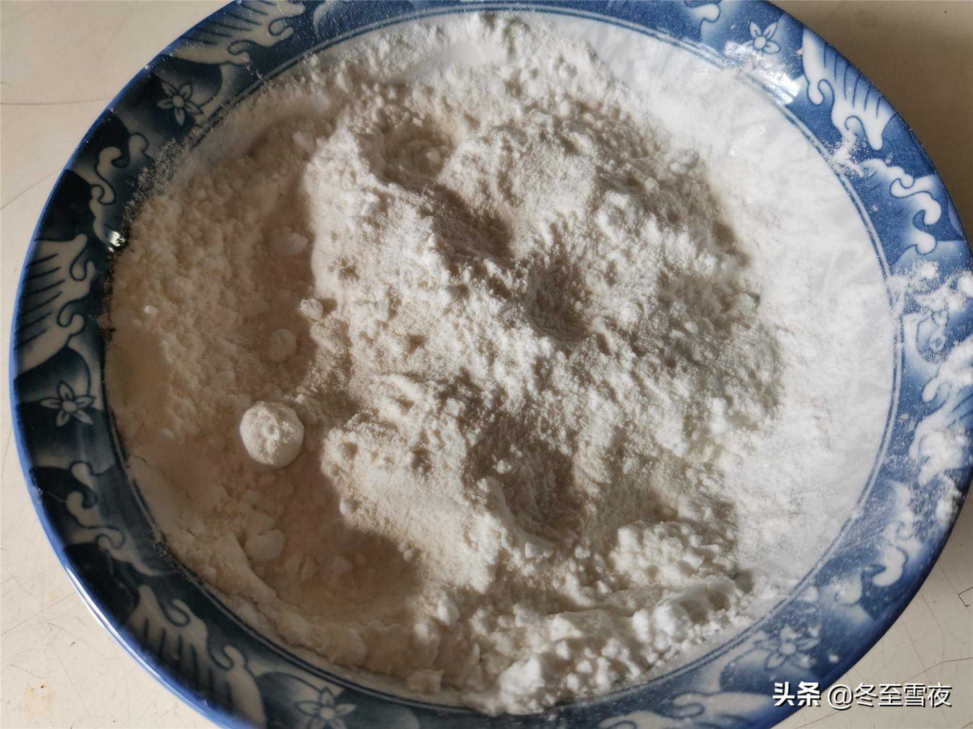 3.将2勺面粉放在小碗内,再加入6勺淀粉,混合在一起拌匀,面粉就是家里用的普通的面粉,淀粉又叫生粉,如果炸鱼单用一种粉,单用面粉炸的话会回软(炸好后一会就不酥脆了),单用淀粉炸完食物表面会脆硬,吃着干和柴,所以最好的方法是要将面粉和淀粉混合使用。当然要想外酥里嫩那么淀粉应该占到混合粉的比较大的比例最好1:3,(面粉1:淀粉3),这样做干炸鱼的效果好。