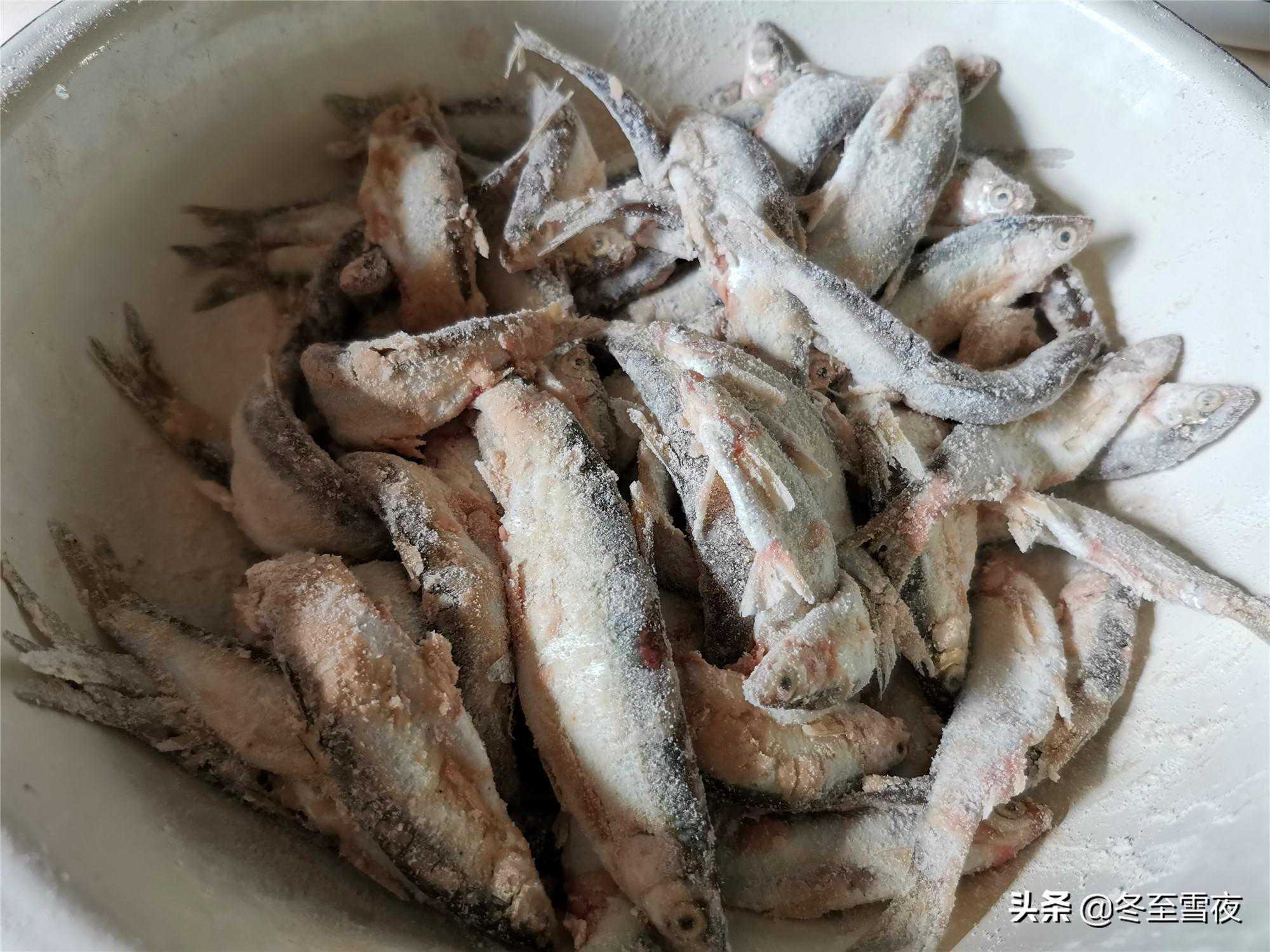 【干炸小白鱼】所需材料:小白鱼1.5斤、油盐适量、姜1块、白胡椒粉1茶匙、五香粉1茶匙、料酒1汤匙、淀粉、6汤匙、面粉2汤匙、
