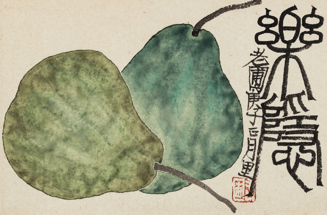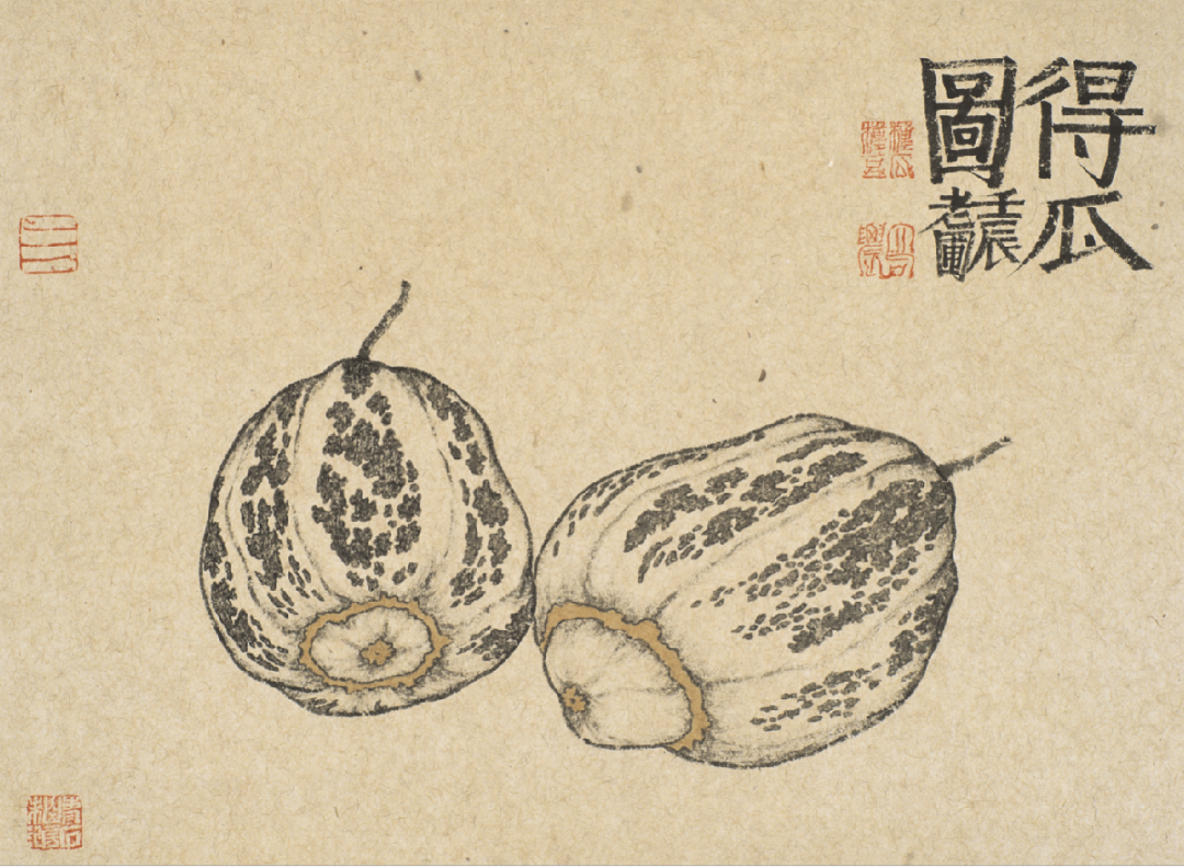 到了老圃的笔下,似乎他做的更加极致了,把这些瓜果蔬菜用一种新的艺术语言重新组合,形成了这样一种绘画之风,他在画面的形式上更加偏向于装饰风格,画面干净。雅致又不是民间百姓的乡土气息,传统笔墨与瓜果蔬菜走到了一起,竟然碰撞出了这么一种画风,你看后是否也有一些感想呢?接下来我们不妨一起去看一下他笔下的这些南瓜、梨、瓜子等等。