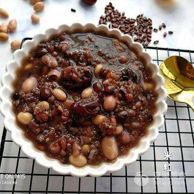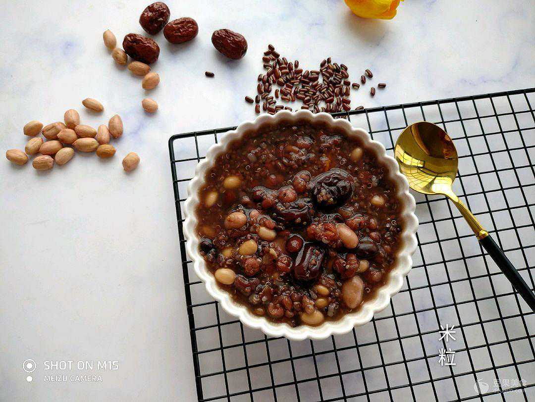 小贴士1.红枣要提前用温水泡开,红枣褶皱里面的灰尘不好清理,多泡一会清洗干净。2.豆类泡太久营养流失,我习惯先把豆类放电压力锅闷半个小时,再放入米类煮20-30分钟。3.使用电压力锅要等气排完再打开,注意安全。