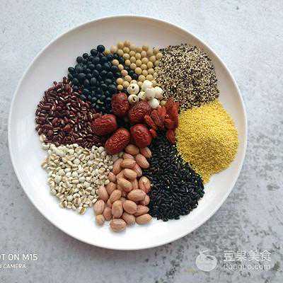 2、把豆类,放一个碗里洗干净,我没泡,直接煮的,,觉得泡久了营养流失了,喜欢泡的可以提前泡几个小时在煮