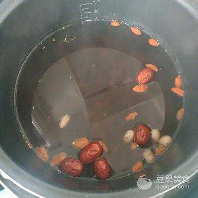 4、时间到,把气排干净再打开,把冰糖,红枣,枸杞,米类洗干净放入电压力锅接着煮25-30分钟(时间根据自家的压力锅调整)