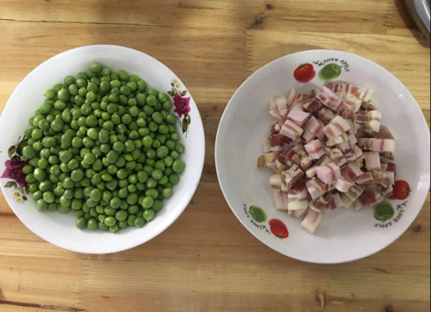 首先要准备的材料有:糯米、咸肉、新鲜豌豆粒、料酒、食用油