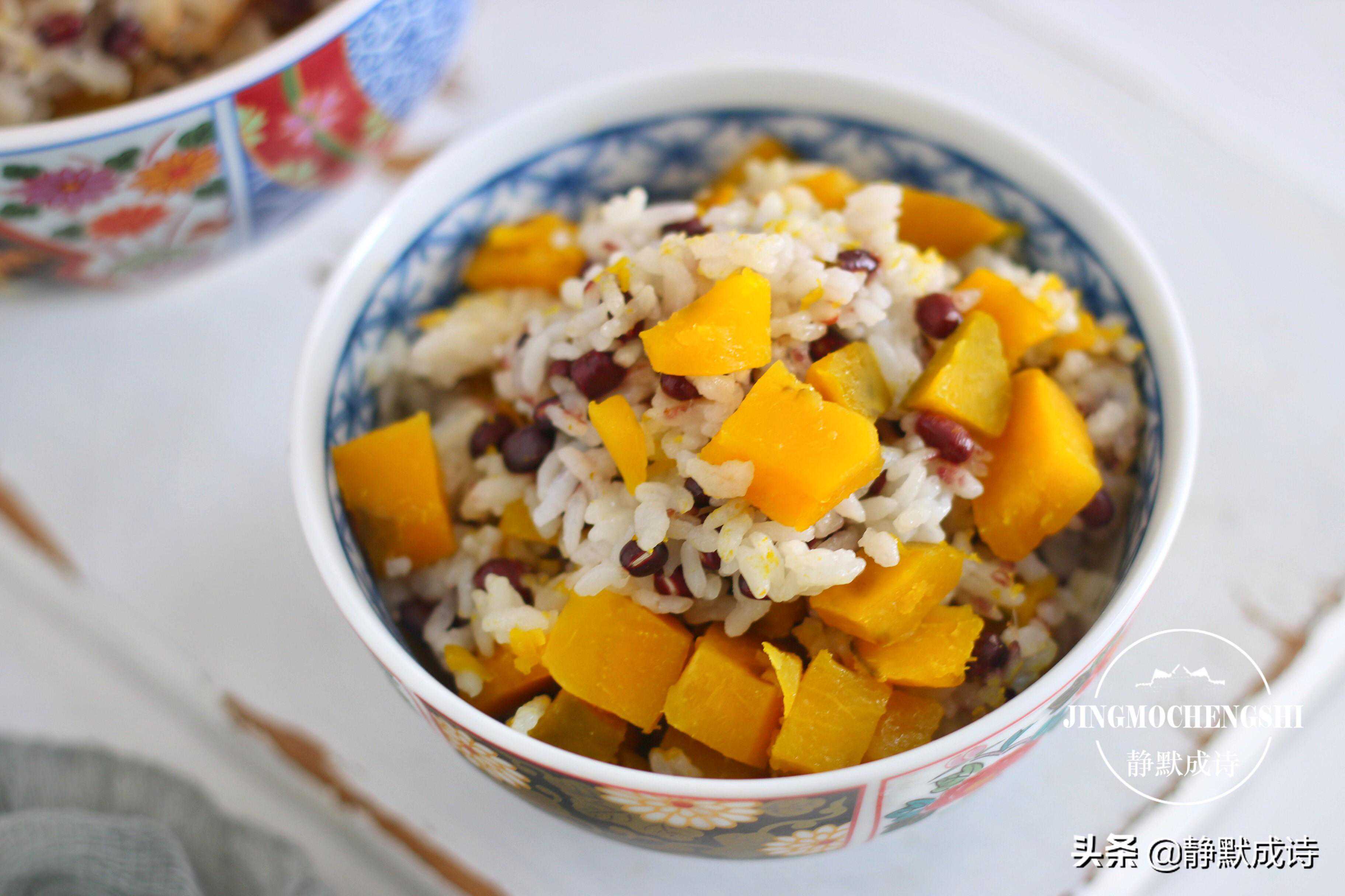 具体做法:红豆提前浸泡5小时以上,泡一晚上更好,不然不容易焖熟。南瓜洗净去皮去籽切块儿,大米淘洗两遍,大米、红豆、南瓜全部放进电饭煲,加一指节的清水,把饭焖熟即可。