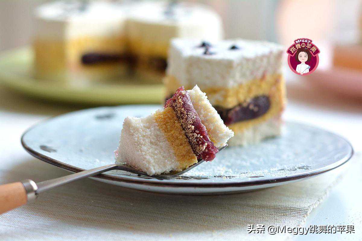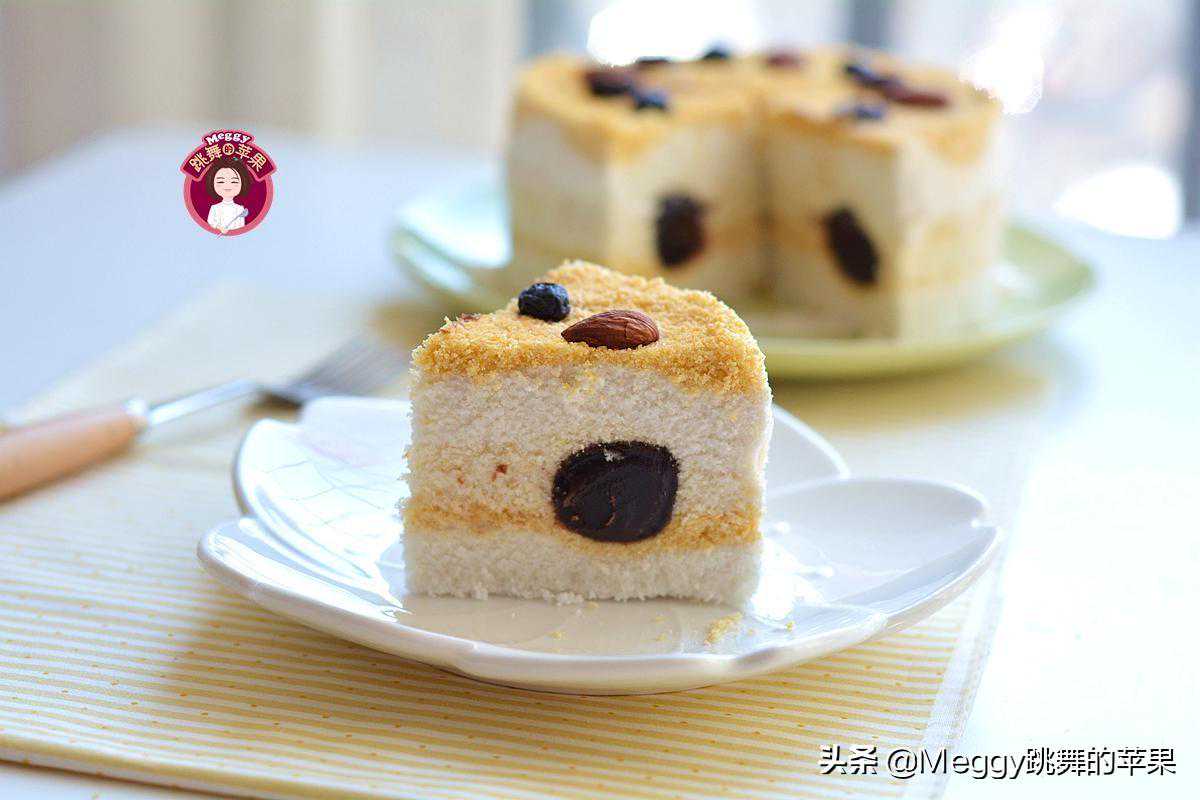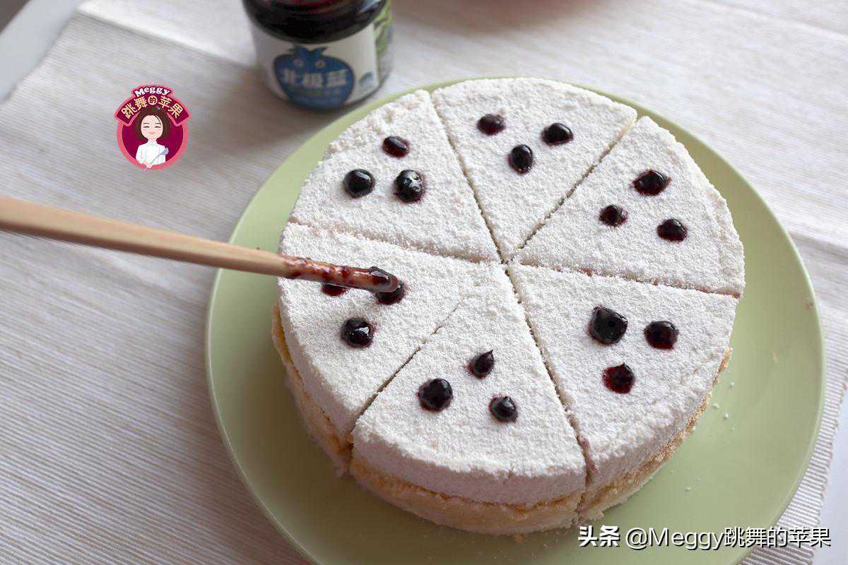 17.松糕底部朝上当顶面,先用蛋糕刀或者利刀以拉锯的方式将其分等份,有果酱可用筷子蘸少放做装饰,配着热茶水,松糕外干内弹,甘香悠长。
