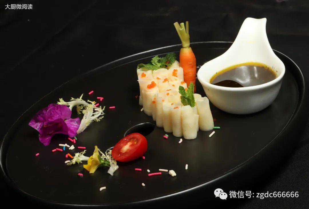 茭白制成卷蘸食烧椒酱,滋味独特,清新爽口,制作简单,成本只有6元,毛利高达75%。