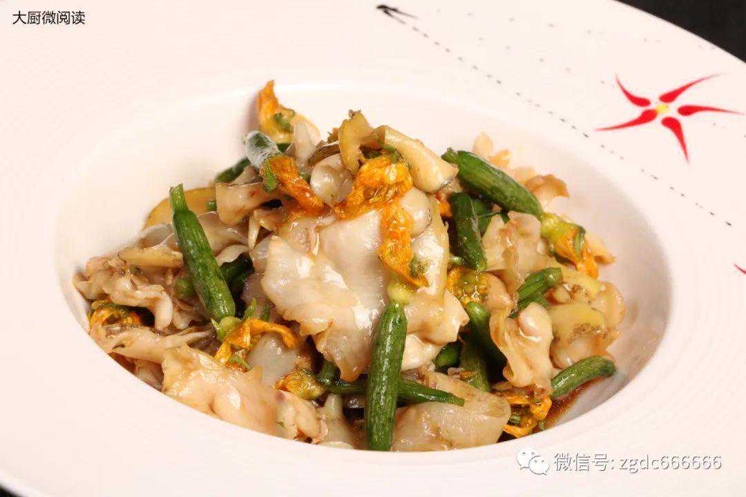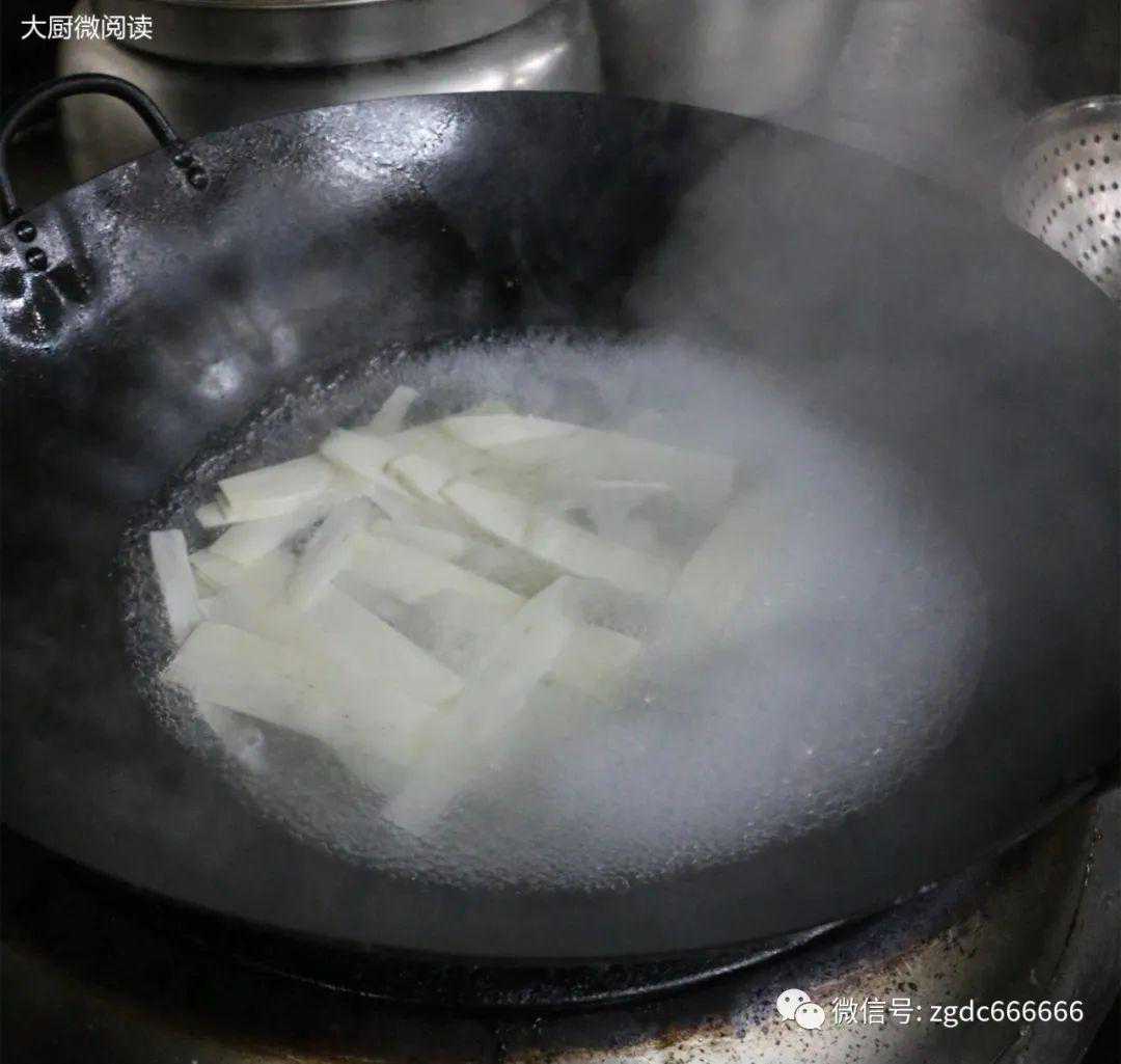 2.螺肉一定要生片,因为飞水时间短至3~5秒,只有薄厚均匀的螺肉片才能达到熟而不老的口感。