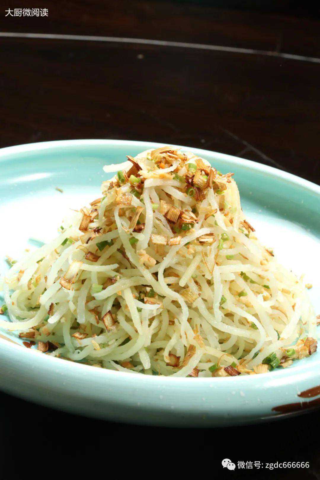 土豆丝加澄面、香油两拌两蒸,再添煳葱油、芝麻盐等调匀,成菜软中带脆、香气扑鼻,毛利极高。