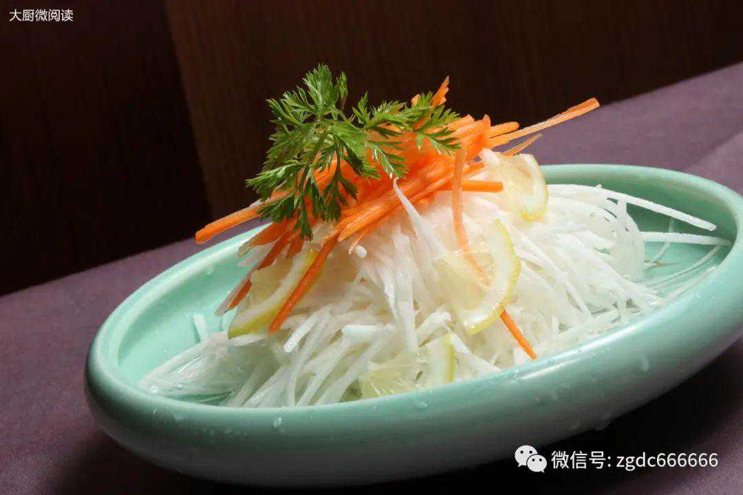 山药丝、胡萝卜丝直接入菜,加酸甜汁、柠檬调拌滋味,卖相清新,口感爽脆。