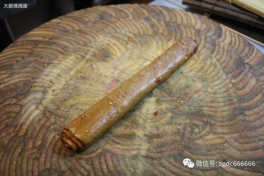 3.每张豆皮上抹一层伤心料,裹起成卷,用保鲜膜密封,放入冰箱冷藏腌制1天。