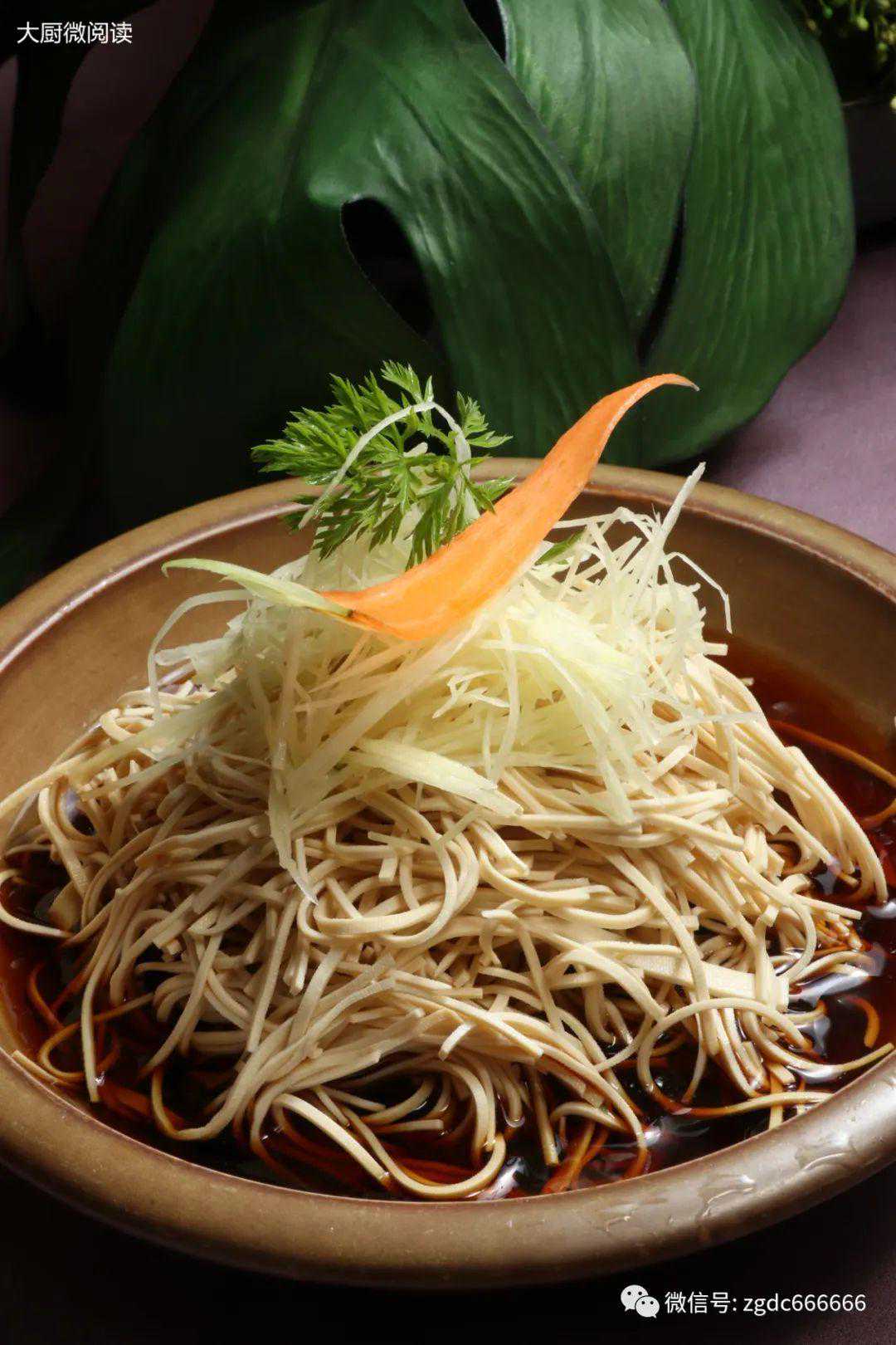 此菜以“热拌”的形式呈现,豆腐丝、土豆丝搭配自制鲜味汁,浇入热油的瞬间发出滋啦滋啦的响声,几秒钟后香味扑鼻而来,简单快捷、诱人食欲,将素菜做出别样滋味。