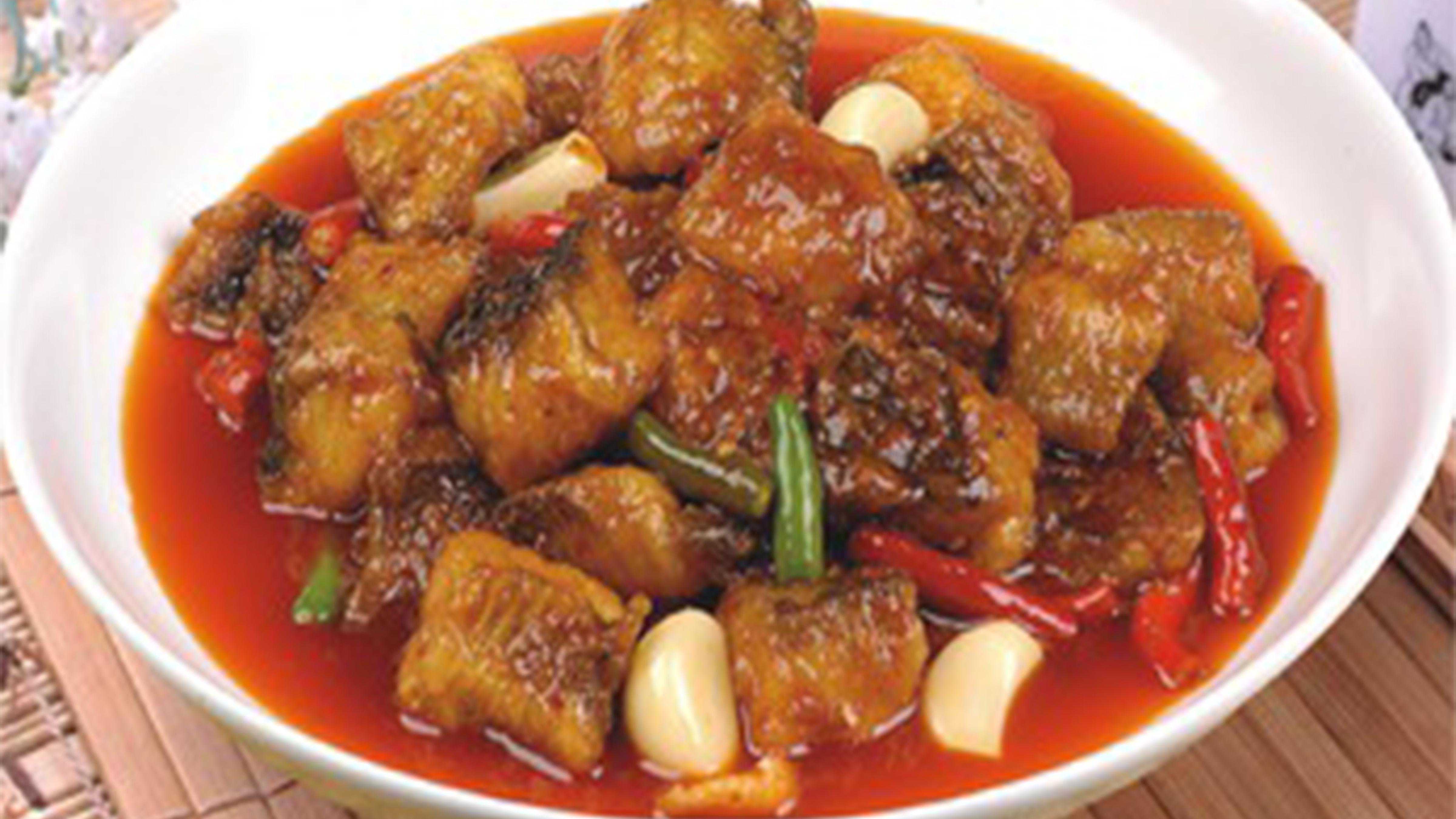 辅料:蒜瓣、干红辣椒、花椒、姜、葱、糖、酱油、醋、料酒、盐、鸡精、食用油、清汤