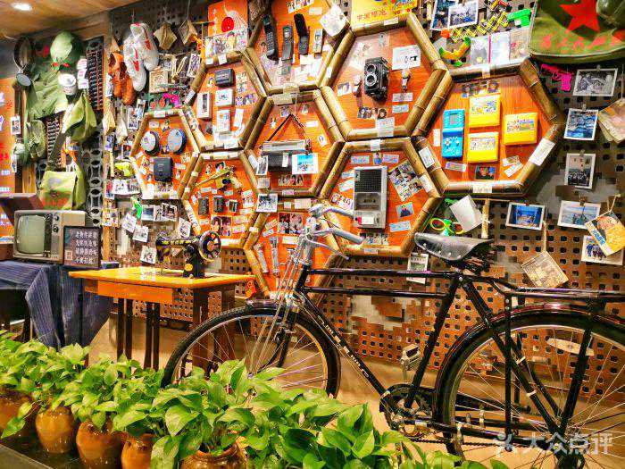 在这里,你可以看到七八十年代的老式电视机,裁缝机,自行车,被吃货感慨吃的是故乡的回忆。在这里,每一个角落,每一个装点,都很有农家味道,家乡的味道,很有海南特色。
