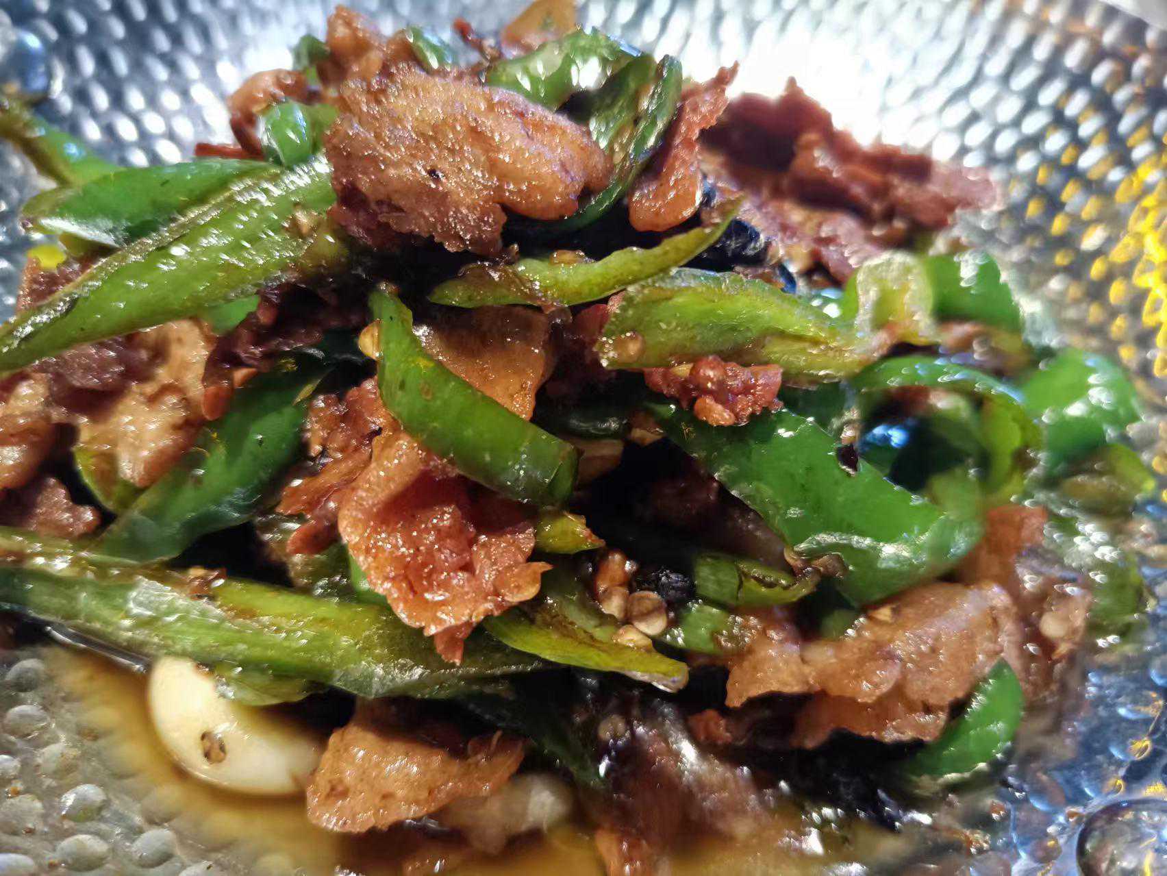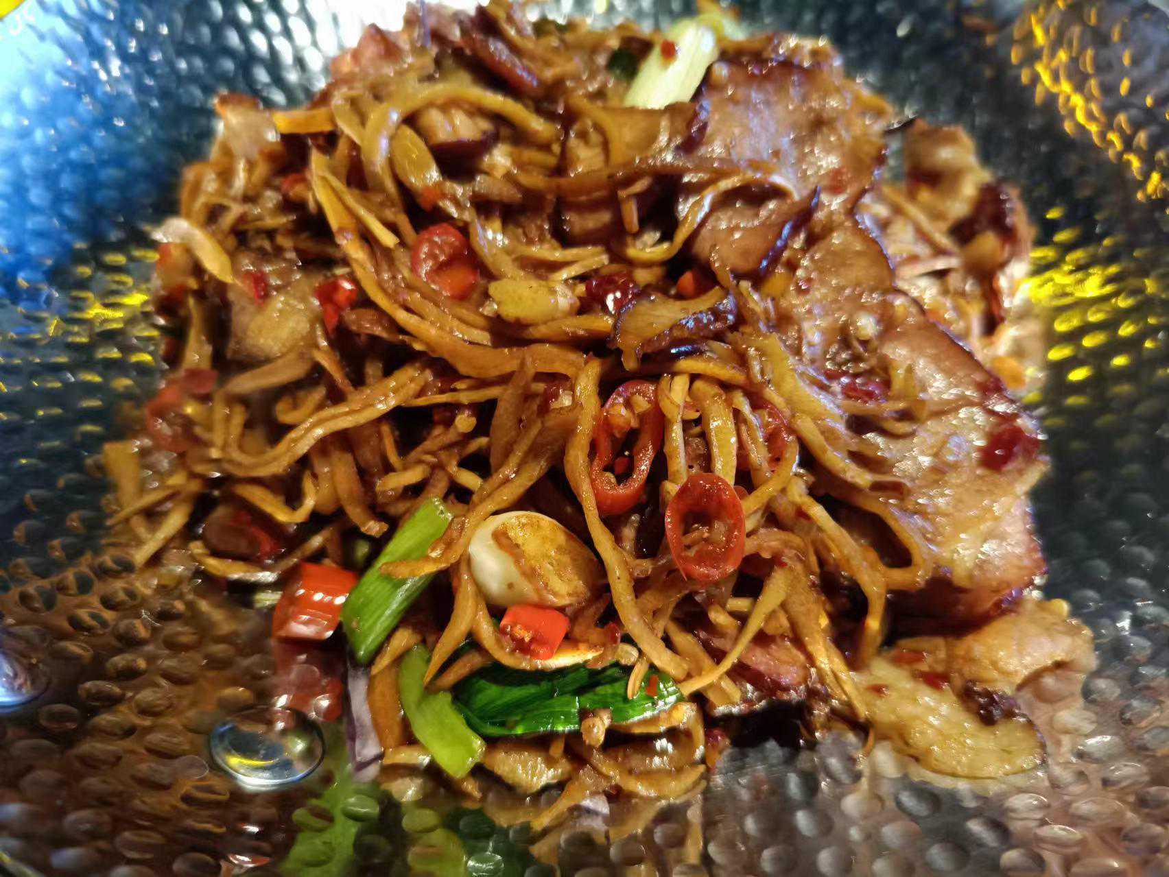 安化竹笋腊肉:新鲜竹笋切丝,搭配正宗安化腊肉,搭配小米辣,青辣椒,大火爆炒,下饭神器。