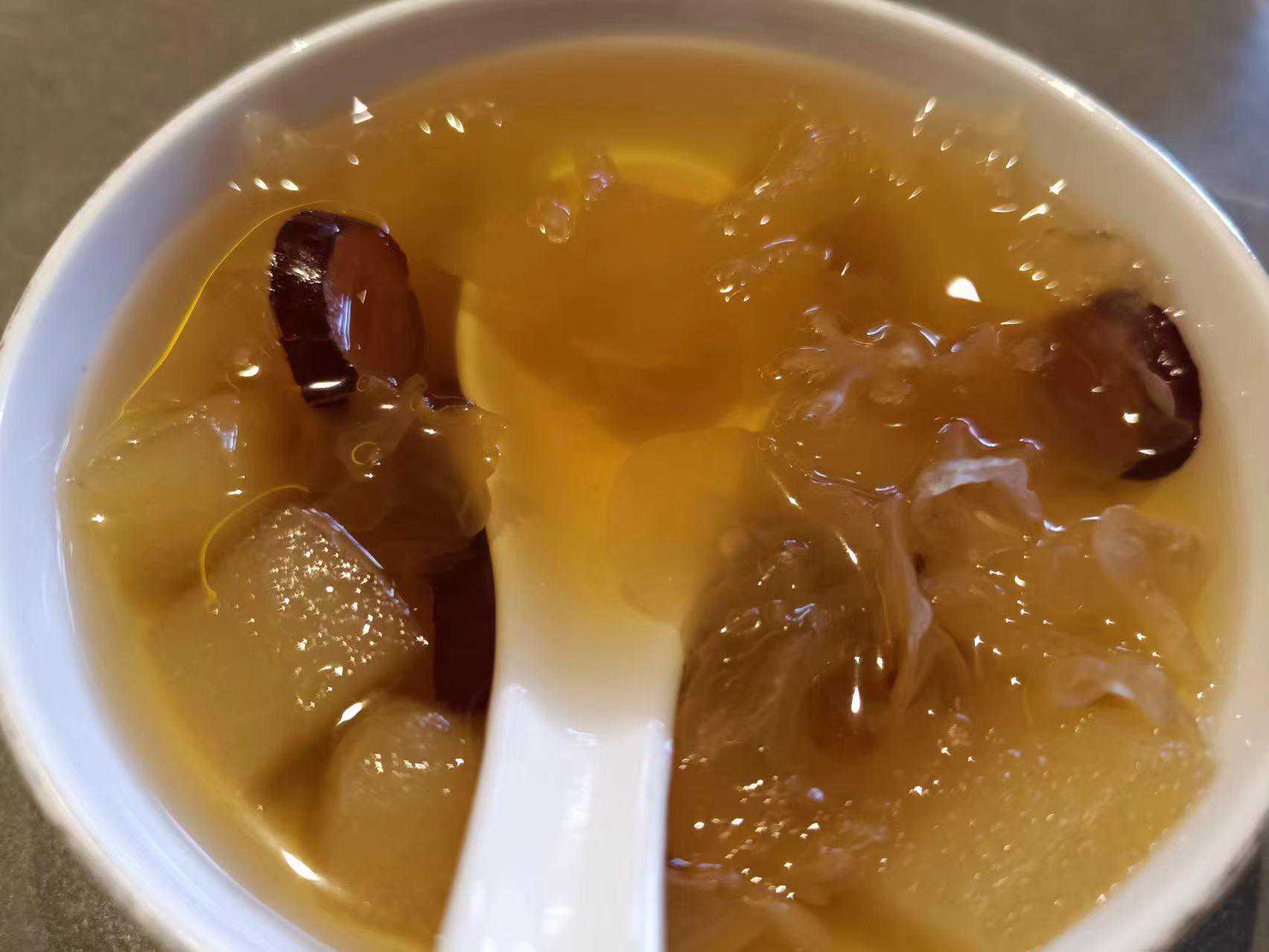 银耳百合莲子羹:店家自制,新鲜莲子,百合,银耳,加冰糖慢火熬制,味道浓郁,老少皆宜。
