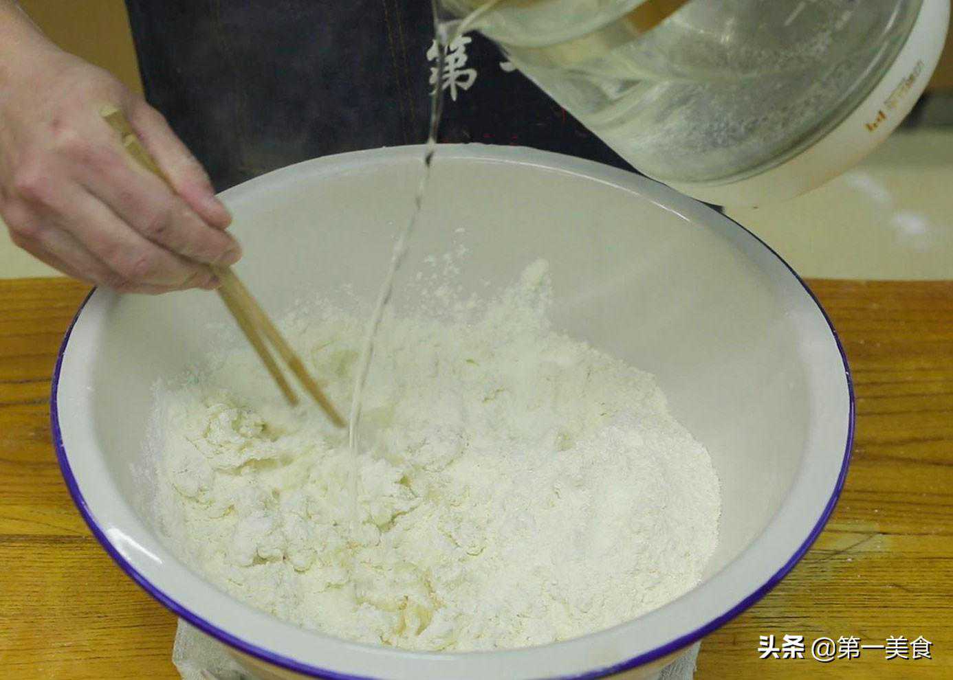 先搅成絮状,再揉成团,这就是咱常说的半烫面。这种半烫面做出来的饼,放凉也不会发硬。