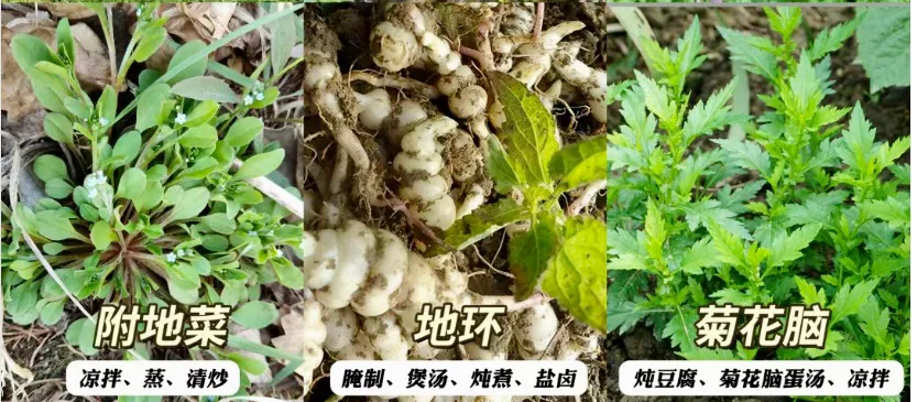 附地菜算是大江南北最常见的野菜;地环营养丰富煲汤很好喝;菊花脑是野菜“七头一脑”中的一脑,在春味中名气颇高。