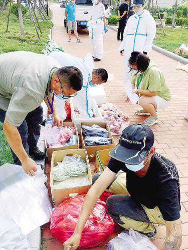 “志愿者太辛苦了,这帮小年轻真是好样的。”从志愿者手中接过订的菜品,村民葛大娘感激地说。拉树房村在疫情初始,就吸纳年轻力量充实志愿者队伍,成立6个疫情防控一线志愿服务队,共58人。志愿服务队主要负责分拣分装菜品、入户送菜等生活物资分配分发工作。一些志愿者通宵分装菜品,好几天睡不上一个整觉,白天还要继续给老百姓发菜,工作强度特别大。第一个报名参加志愿者队伍的志愿者沈琦,不怕苦不怕累不顾自身安危,在为居民配菜服务中吃苦耐劳,两次因为天气炎热工作量大而中暑,但她从不作声坚持把百姓的物资送到家中;在青岛科技大学读书的志愿者牟双发现有没订上菜的居民,就主动把自己家的菜分给居民。