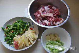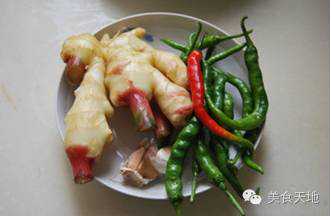 子姜切片。青红椒切成马蹄状,各种材料全部准备妥当。