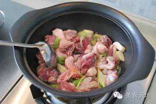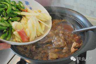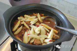 揭盖,当汤汁变的少而浓稠时,鸭肉也焖的差不多了,把子姜片倒进去。