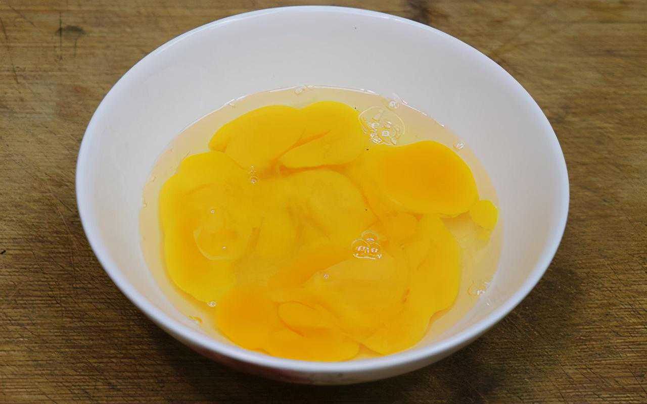 第一步:把准备好的四个鸡蛋打入碗中,用筷子稍微搅动一下即可,注意不要搅得太碎了。