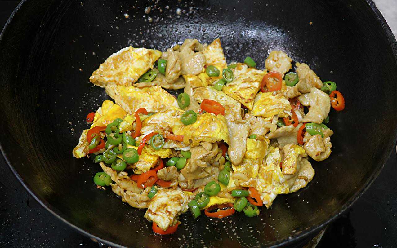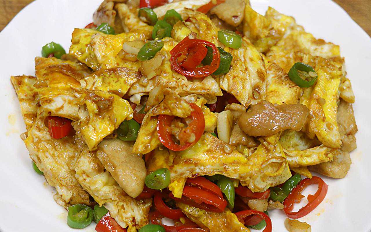 第六步:把切好的鸡蛋块下入锅中大火翻炒均匀,然后调味少许生抽酱油、蚝油、盐、白糖、香油,再次翻炒均匀即可出锅装盘。