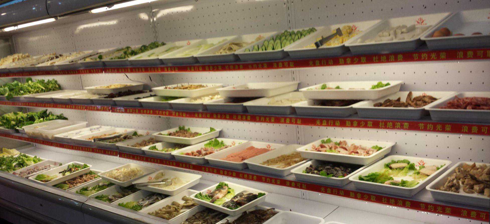 蔬菜区和荤食区也是分开的,食材摆放比较的整洁,加菜很快,看起来也比较的新鲜。