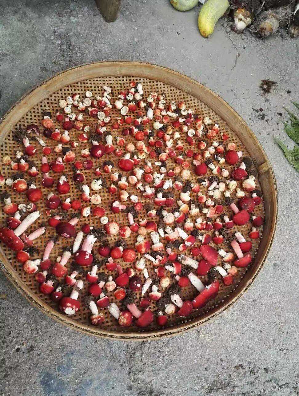 从小在乡下长大的孩子,应该不陌生。也许很多人见过但是很少人吃过。因为它过于珍稀,很难有人能买到天然生长的红菇。现在市场价普遍要3~5百一斤。