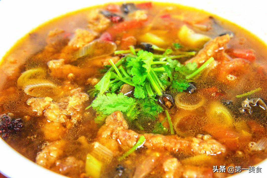 不过在众多烩菜中,要说最爱的还是这道酸汤小酥肉,那炸至金黄焦酥的小酥肉,在番茄、香醋以及香料熬成的汤底中,慢慢浸润入味,再辅以木耳或者黄花菜调节口感,又酸又香又开胃,是一道连汤都能喝完的美味佳肴。