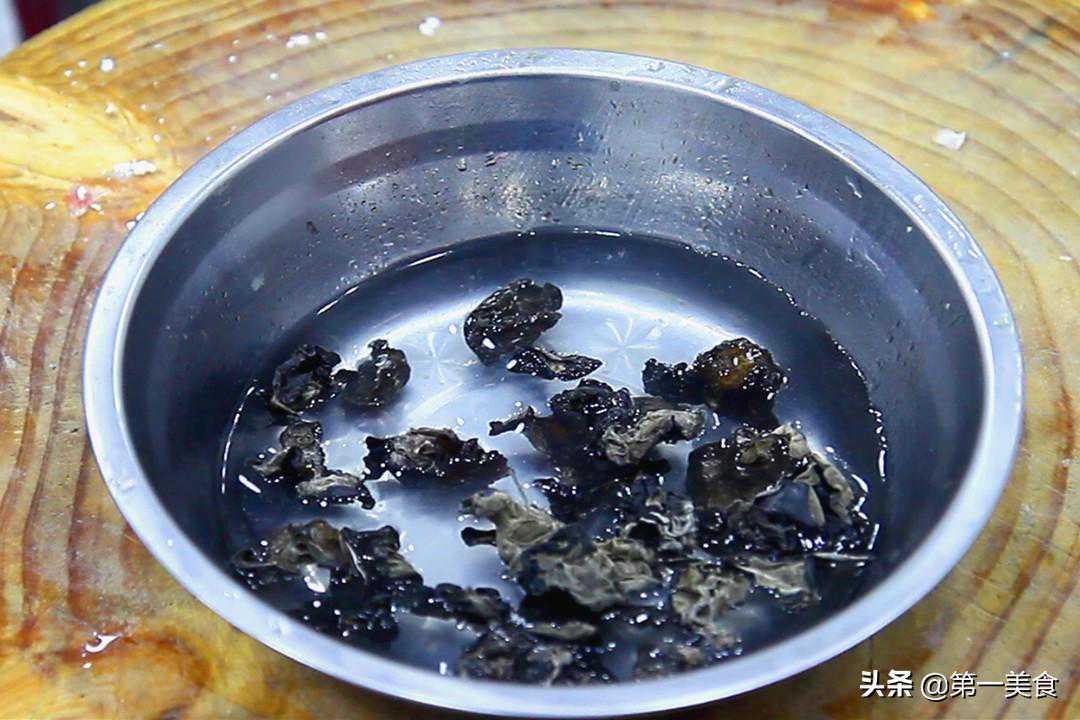 4.葱白斜切成马蹄片,生姜切成片,西红柿半个、切片,和葱姜放在一起;泡好的木耳掐去根部,随便切上几刀。