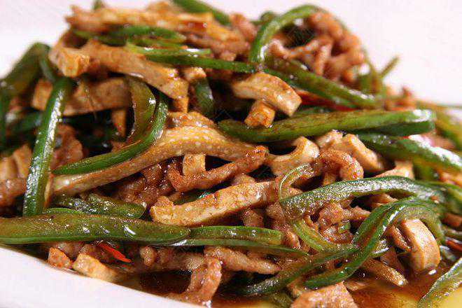 主要食材和烹饪方法:营口过油野猪肉起源于明代,是一道传统菜肴。在营口盖州地区,过油肉以人工饲养的野猪肉为材料制作而成。选用瘦肉上浆、拉油,再配以天然黑木耳、蘑菇和冬笋烹炒,也可加入鲜蘑、土豆片等食材烹制。