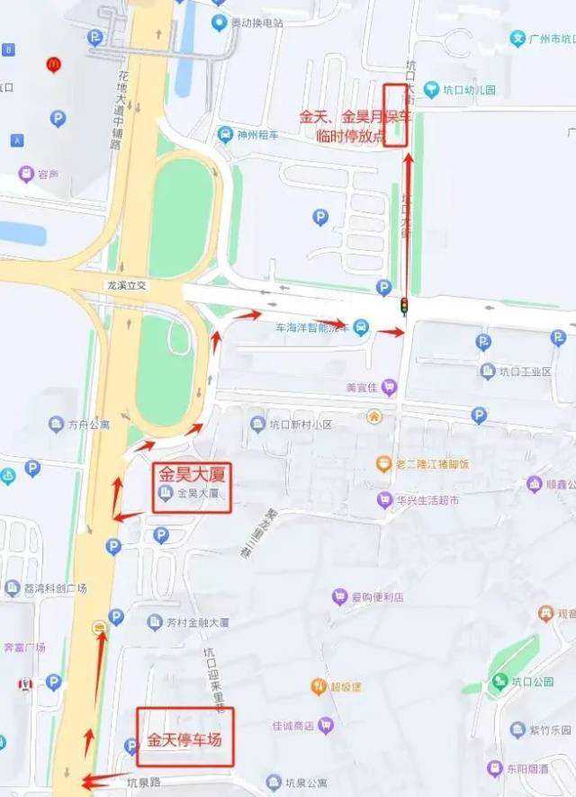 停车指引如下所示:
